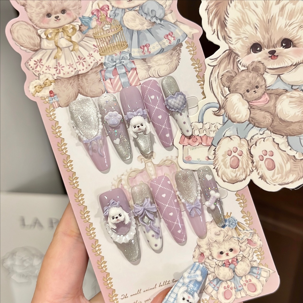 ちいさなビションと銀のリボンが導く、星屑のネイルチップ。