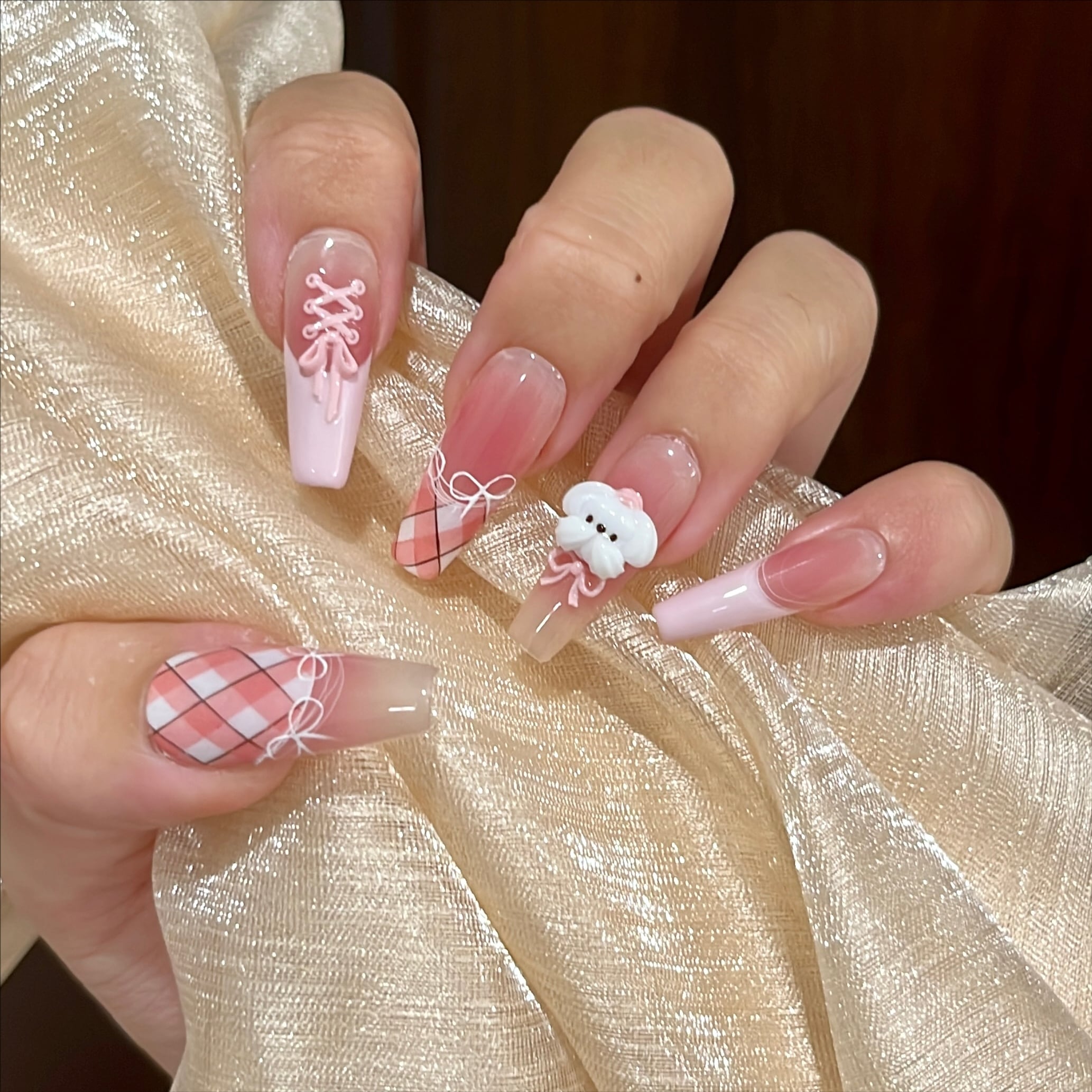 ・パステルピンク×アーガイルチェック柄の可憐な組み合わせ