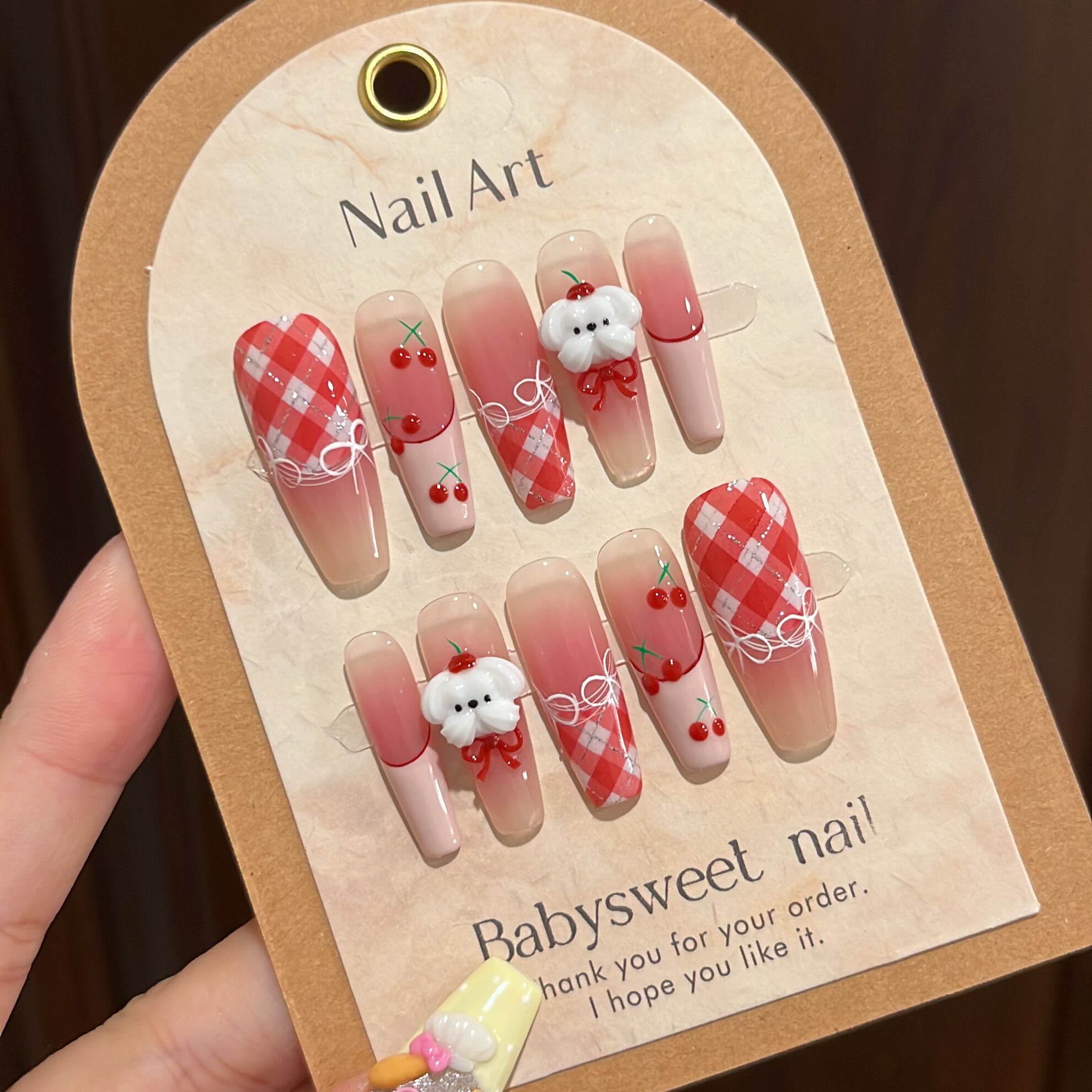 ・手描き風のさくらんぼとチェックで、どこか懐かしい甘さを表現