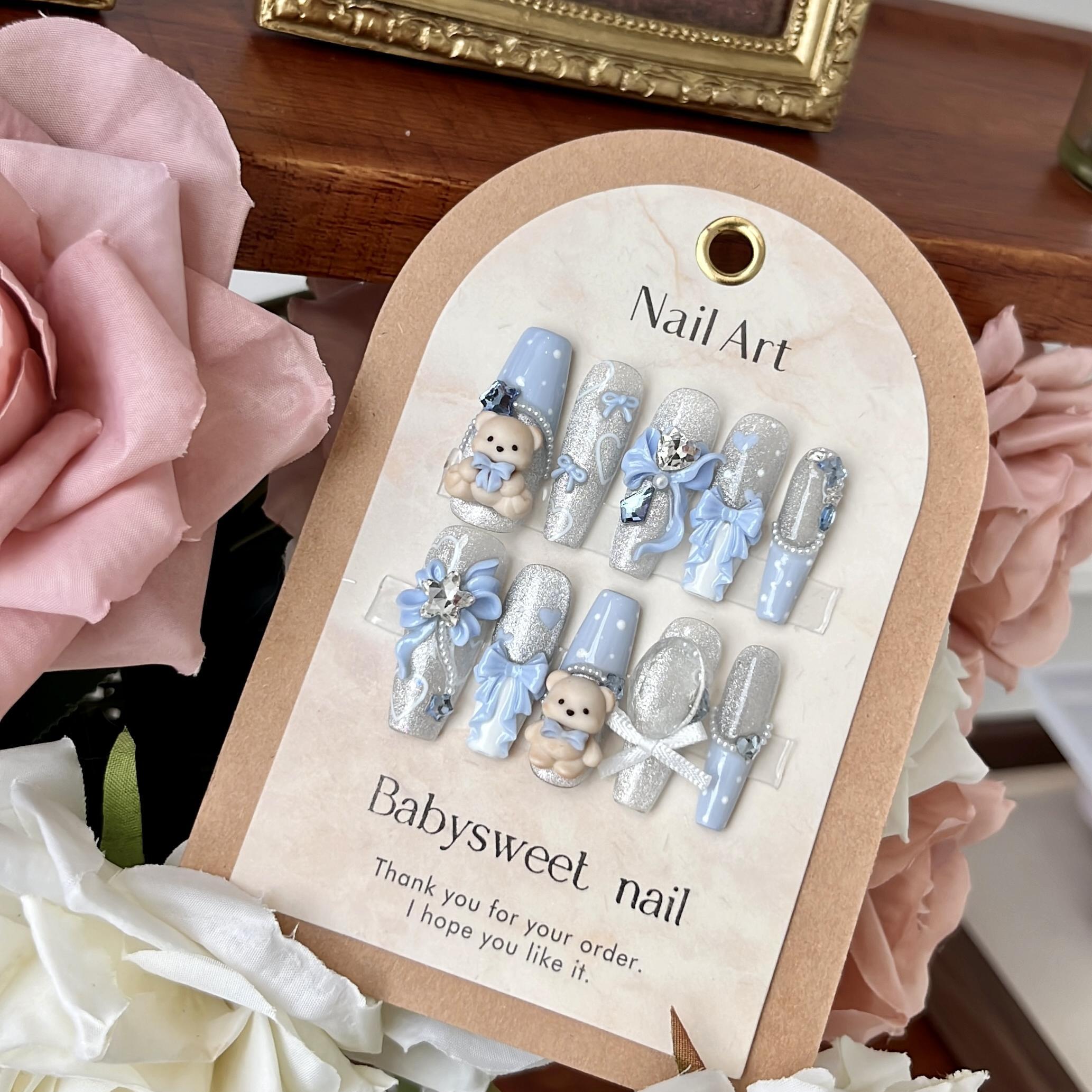・リボン×ビジュー×くまの3Dパーツで立体感たっぷり