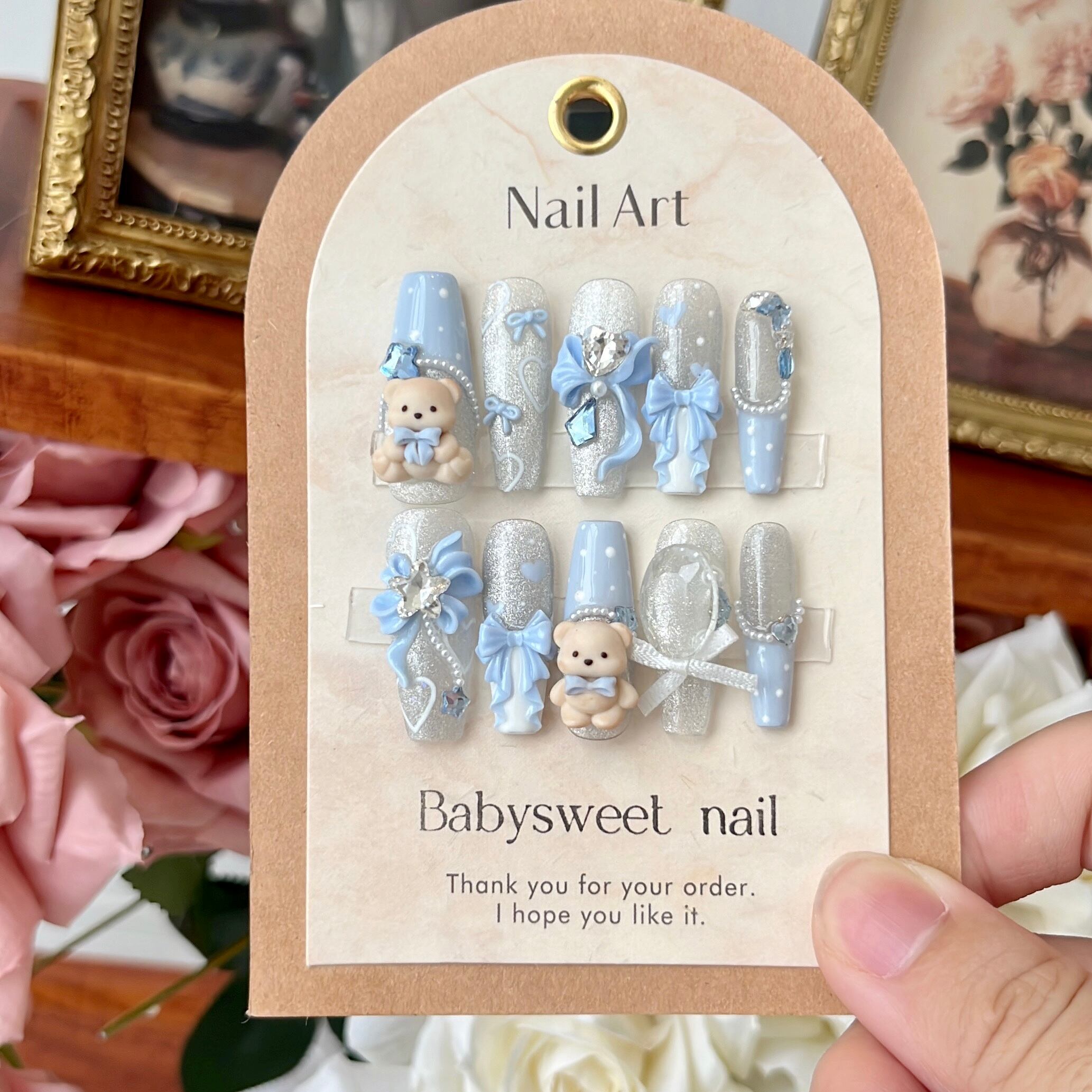 ・ふわふわの子くまが、まるで“夢の番人”のように寄り添ってくれる仕上がりに。