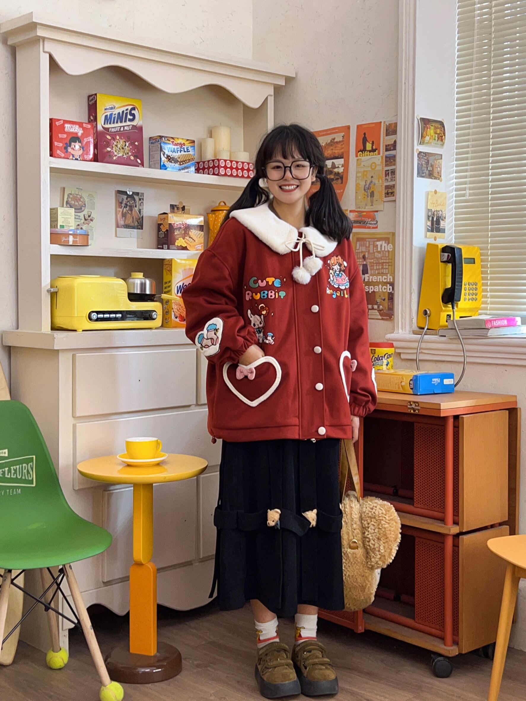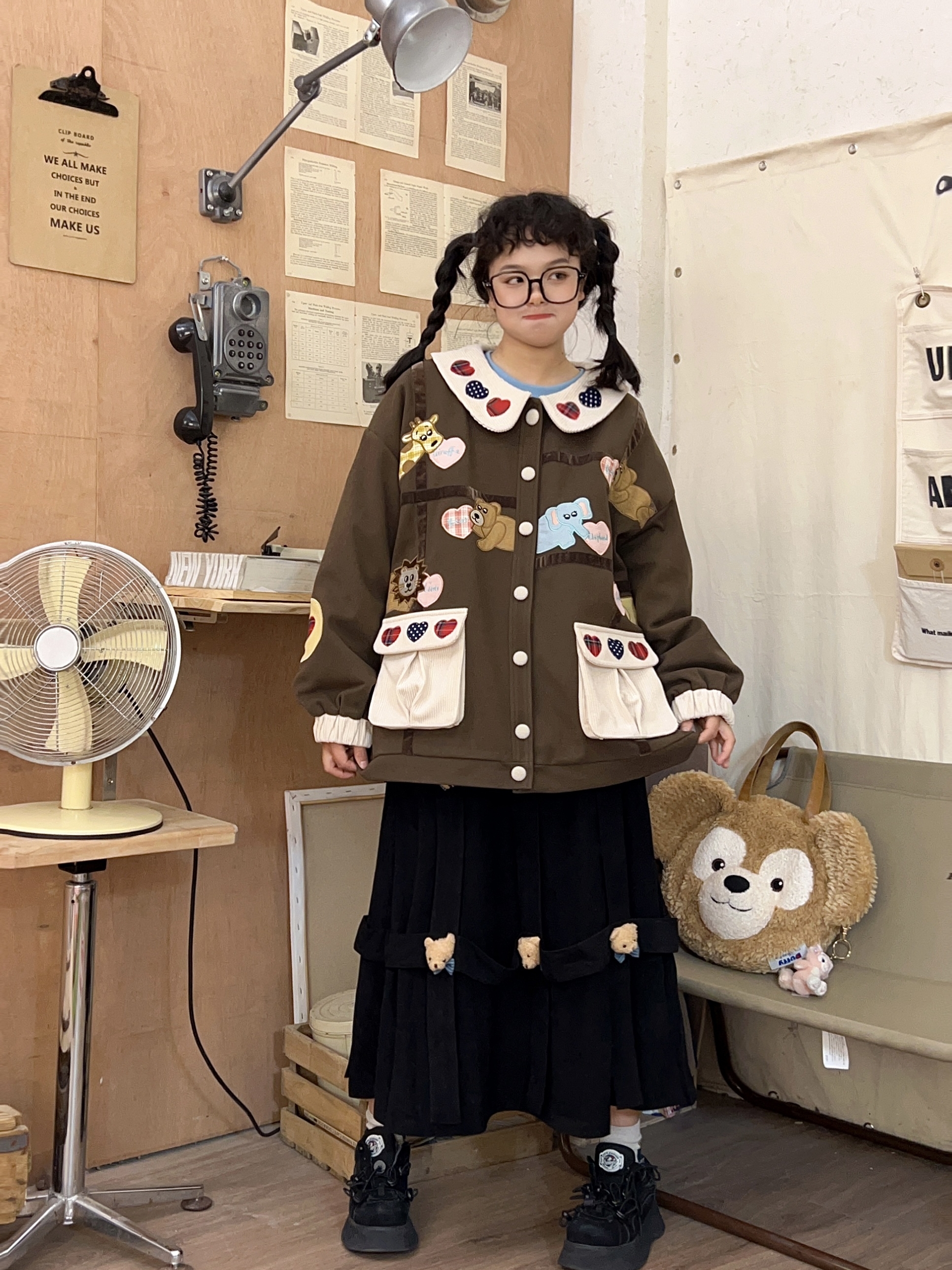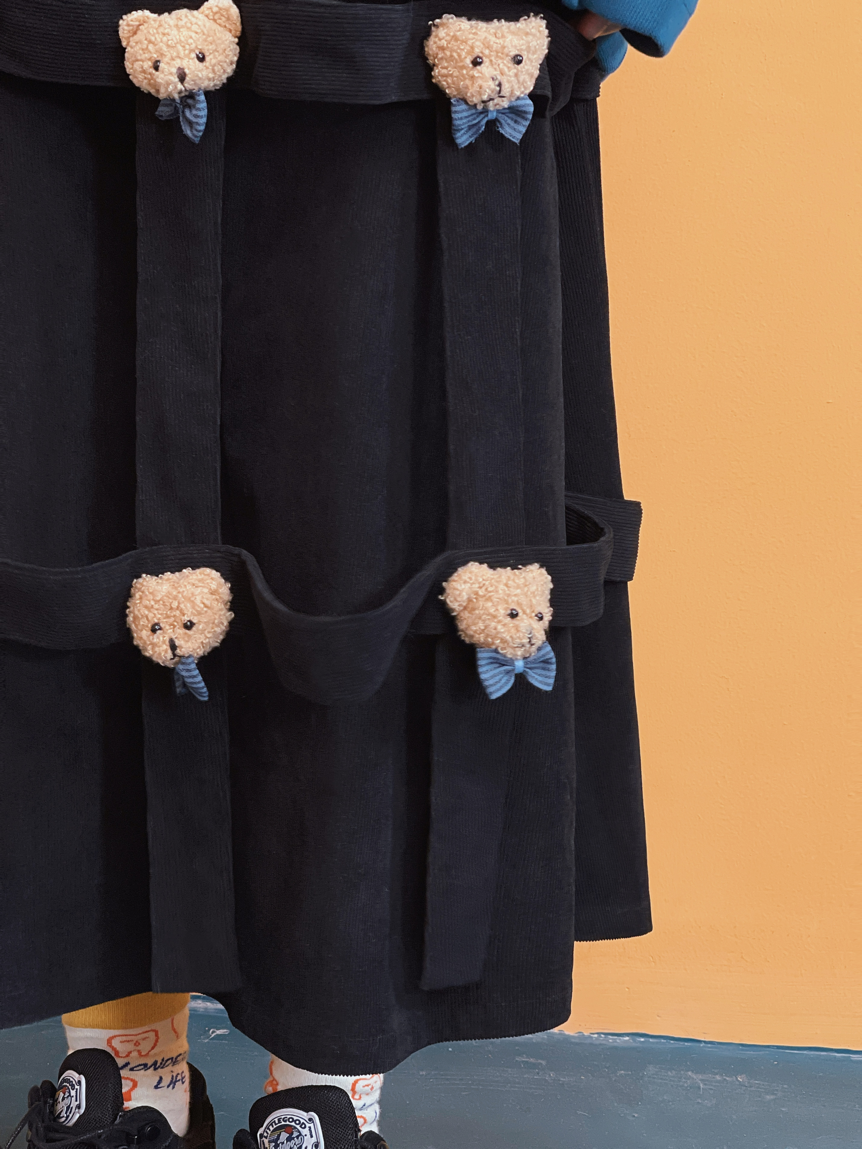 黒のコーデュロイ生地に、ぬいぐるみのような質感が映える。