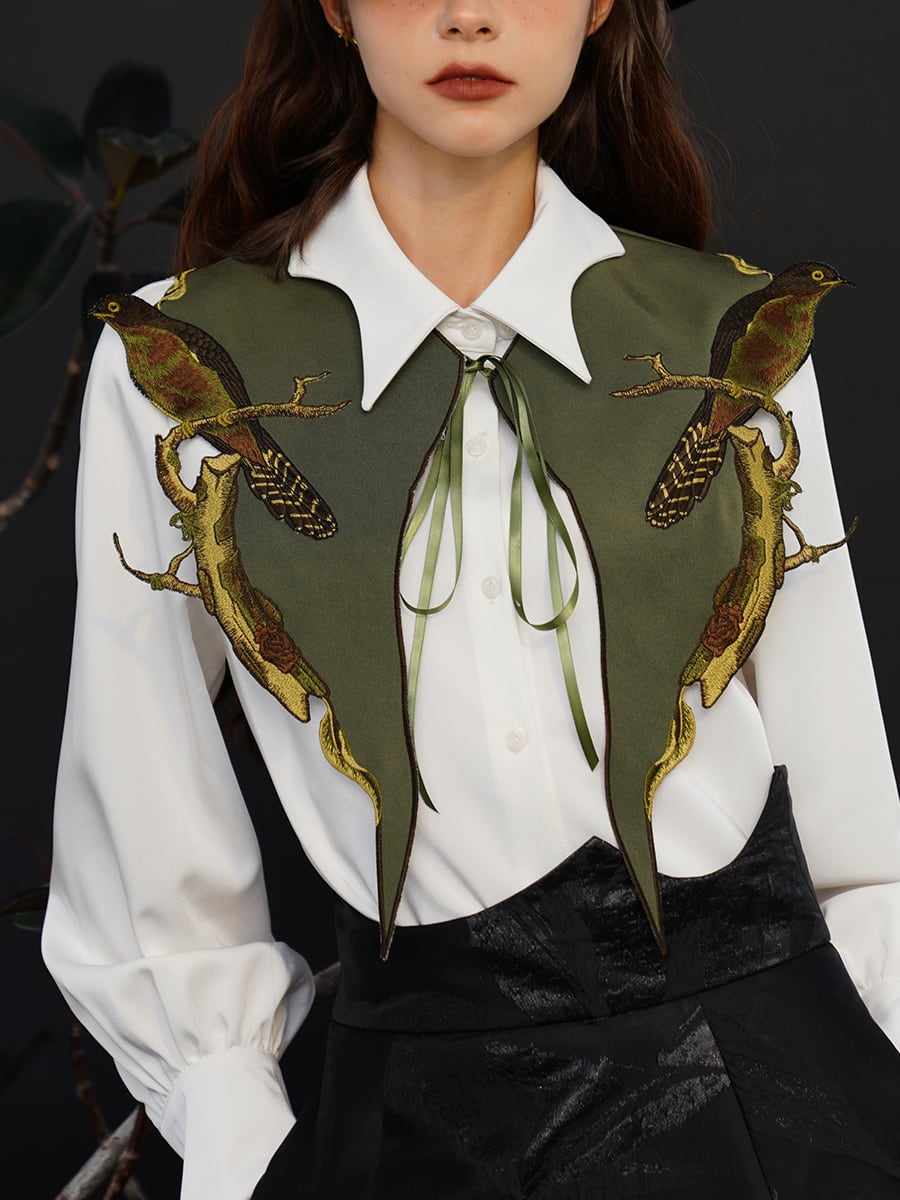 白シャツに重ねるだけで、まるで古い童話の一頁のような装いに。