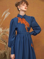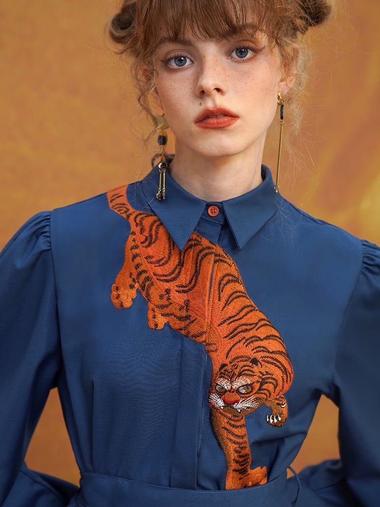 金糸の虎が優雅に舞う刺繍ワンピース。